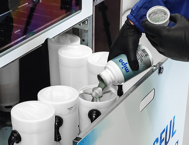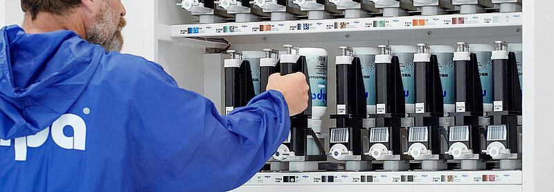 De Mipa Abtönautomat CR 6 zet nieuwe maatstaven met volumetrische doseertechnologie. Hierdoor zijn uiterst nauwkeurige mengsels mogelijk vanaf een hoeveelheid van 0,0077 ml, wat vooral bij spotreparaties een voordeel is. Omdat de kleurmengautomaat onafhankelijk van een weegschaal werkt, bespaart hij kostbare tijd bij het doseren. De tijdwinst wordt nog duidelijker wanneer de opdracht gemakkelijk vanaf een kantoorwerkplek wordt ingevoerd. Op het display van de machine verschijnt vervolgens een takenlijst die alleen nog maar hoeft te worden bevestigd. De vervolgens afgedrukte etiketten worden op de mengbekers geplakt, die vervolgens volledig automatisch worden gevuld. Het ruimtebesparende, ergonomische ontwerp vergemakkelijkt de bediening en maakt een vrijwel residuvrije lediging van de tonercartridges mogelijk. Ook de compactere variant, de Mipa Abtönautomat CR 4, garandeert de hoogste doseernauwkeurigheid en proceszekerheid.
