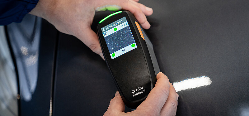 Een ander belangrijk onderdeel van het Smart Mixing System is het nieuwe kleurmeterapparaat X-Rite MA 5C. Dit moderne apparaat met meerdere hoeken en een ingebouwde camera registreert kleur- en structuurgegevens in één enkele stap. Het is snel, nauwkeurig en intuïtief te bedienen en vormt de basis voor exacte mengrecepten, die direct via de software MipaMix Elite worden aangemaakt. De combinatie van meetapparaat, software en machine zorgt voor maximale proceszekerheid en perfecte resultaten.